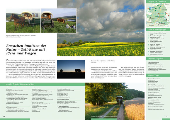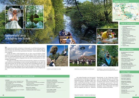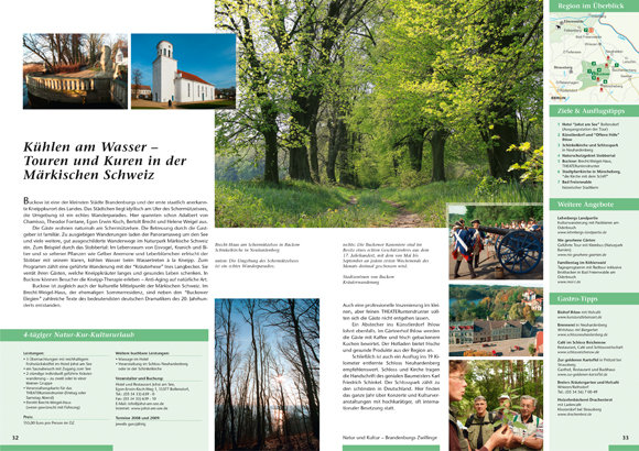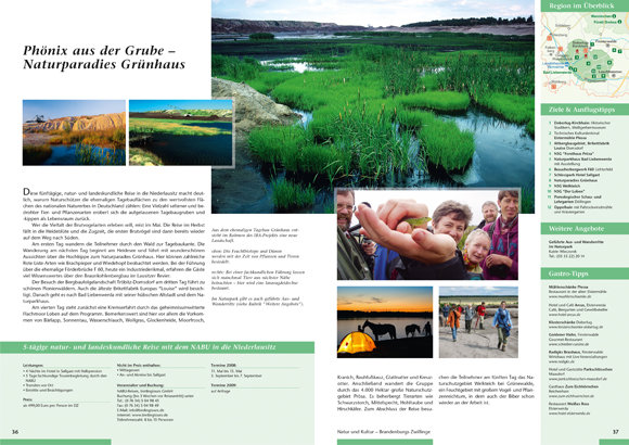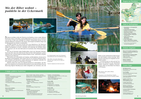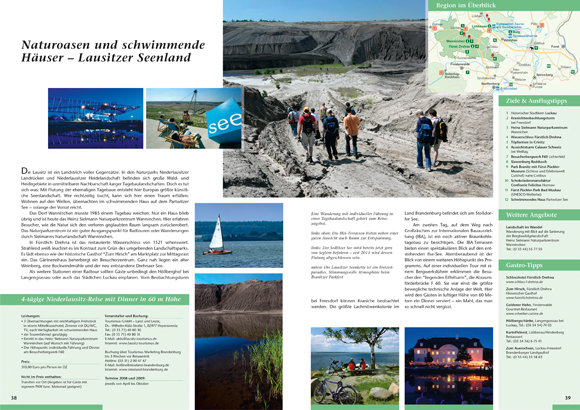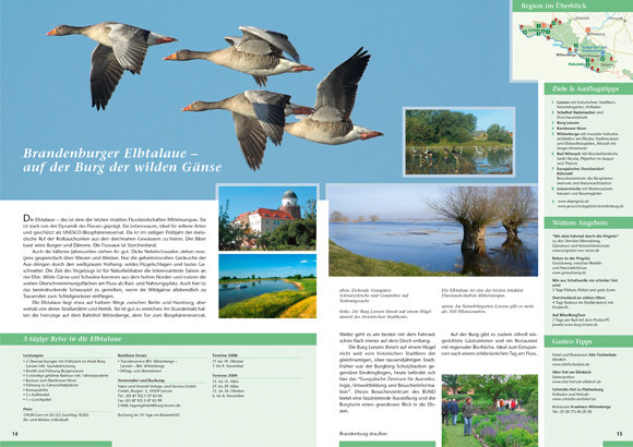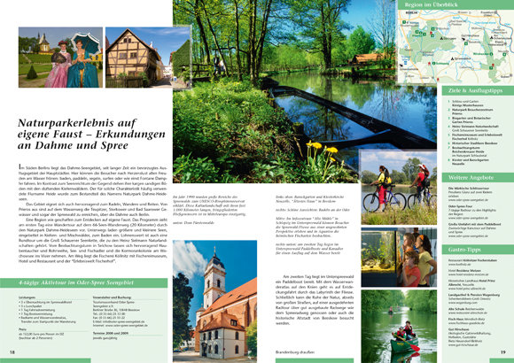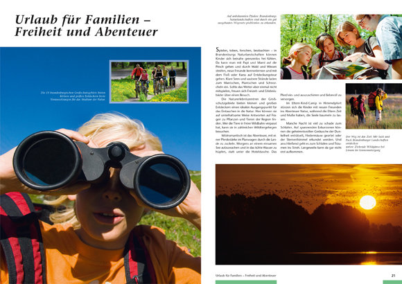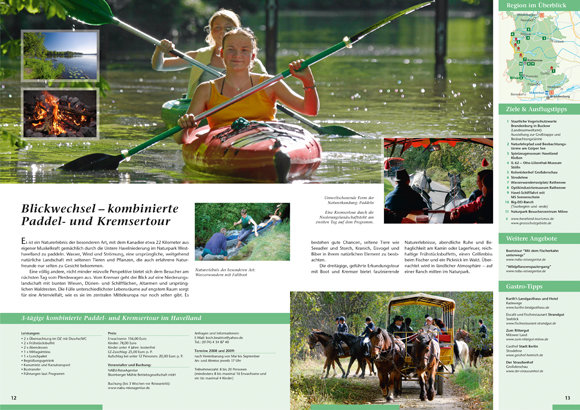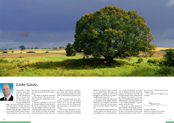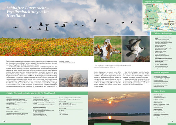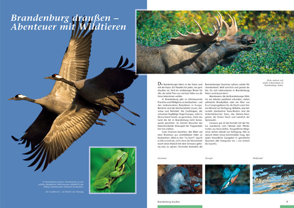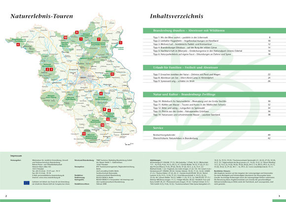 Die Broschüre wurde in Kooperation mit der Tourismus Marketing Brandenburg (TMB) und der BTE Berlin entwickelt. Die Kernaufgaben des Gesamtauftrags bestanden in der Entwicklung eines touristischen Vermarktungskonzeptes für Naturreisen im Bundesland Brandenburg und dessen strategische Implementierung in ein visuelles Gesamtkonzept.