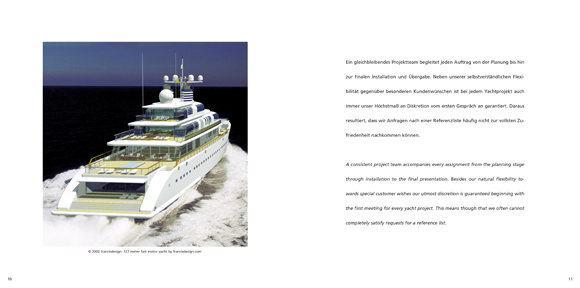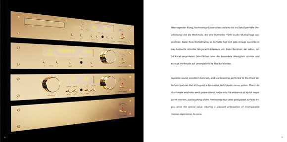 Die Yacht Audio GmbH in Berlin ist spezialisiert auf den Einbau hochwertiger Musikanlagen auf Megayachten. Als Resultat einer Entwicklungskooperation mit der deutschen HighEnd-Schmiede Burmester Audiosysteme ist die Produktlinie Burmester Yacht Audio entstanden. So tragen unter anderem neueste Oberflächenbeschichtungen dazu bei, die audiophile Luxusklasse auch für den Einsatz auf großen Yachten anbieten zu können.